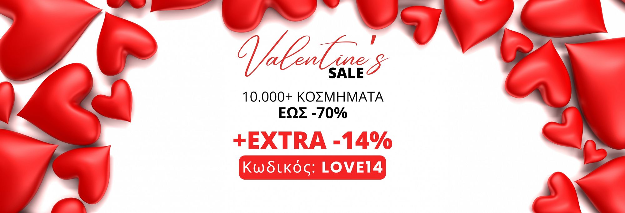 Γιόρτασε την αγάπη με extra -14% έκπτωση σε όλα τα κοσμήματα! ✨