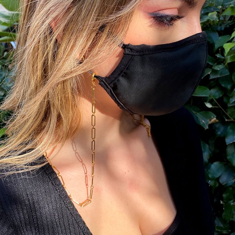 Χειροποίητη αλυσίδα 3 σε 1. Μπορεί να χρησιμοποιηθεί ως αλυσίδα μάσκας, ως αλυσίδα γυαλιών αν προσθέσετε τα λαστιχάκια στις άκρες και σαν κολιέ αν κουμπώσετε τις δύο άκρες μεταξύ τους. Είναι κατασκευασμένη από ανοξείδωτο ατσάλι επιχρυσωμένο που δεν μαυρίζει και δεν προκαλεί αλλεργίες και έχει κουμπώματα ασφαλείας. Μήκος 70cm.