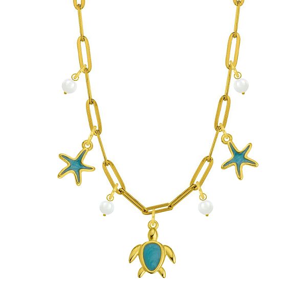 Κολιέ Από Ατσάλι Επιχρυσωμένο Με Αστερίες Και Χελώνα AA13724