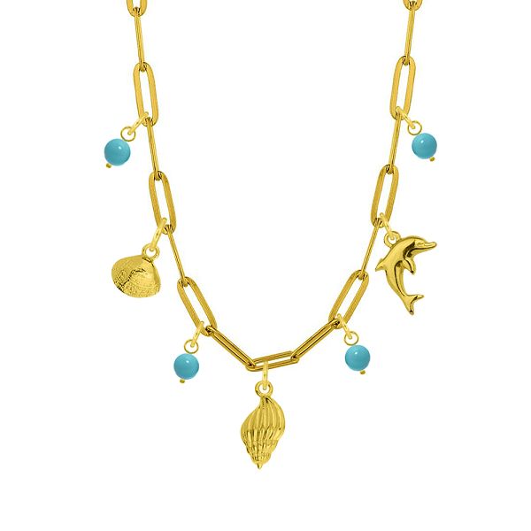 Κολιέ Από Ατσάλι Επιχρυσωμένο Με Κοχύλια Και Δελφίνι AA13727