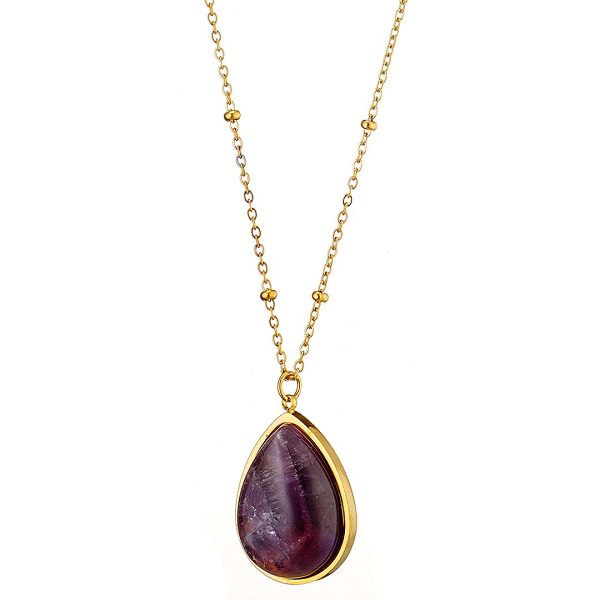 Κολίε Από Ατσάλι Επιχρυσωμένο 24Κ Με Δάκρυ Μωβ AS13665
