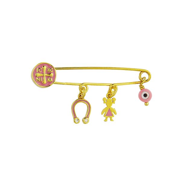Παραμάνα Από Ασήμι 925 Επιχρυσωμένο Με Ματάκι, Σταυρό Και Πέταλο KO70702