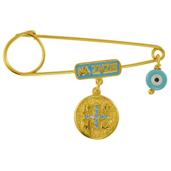 Παραμάνα Από Ασήμι 925 Επιχρυσωμένο Με Ματάκι Και Κωνσταντινάτο KO70494