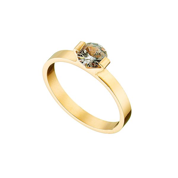 Δαχτυλίδι Μονόπετρο Από Ανοξείδωτο Ατσάλι Επιχρυσωμένο AS38696