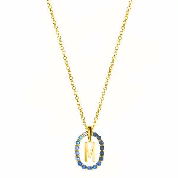 Κολιέ Από Ασήμι 925 Επιχρυσωμένο Με Μονόγραμμα Και Swarovski Μπλε EX15343