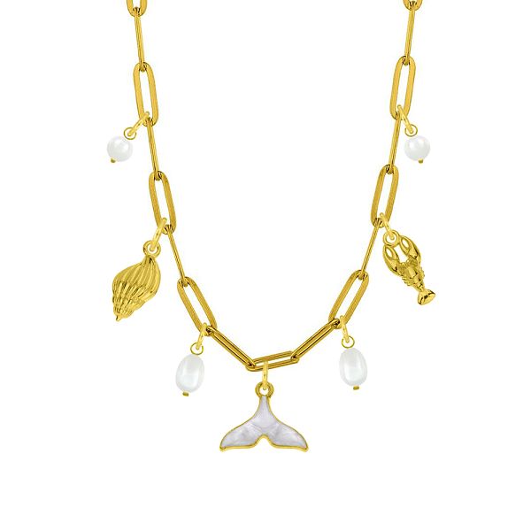 Κολιέ Από Ατσάλι Επιχρυσωμένο Με Κοχύλι, Ουρά Φάλαινας Και Αστακό AA13719