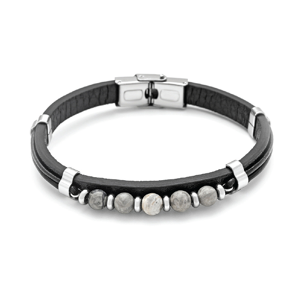 Βραχιόλι Δερμάτινο Με Ατσάλι Και Χάντρες Ίασπη L31A-B001-6