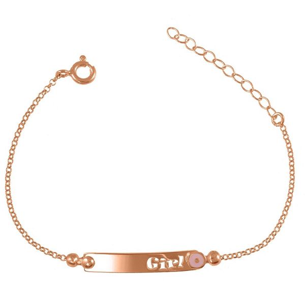 Βραχιόλι Ταυτότητα Από Ασήμι 925 Ροζ Επιχρυσωμένο Girl Με Ματάκι EX27802