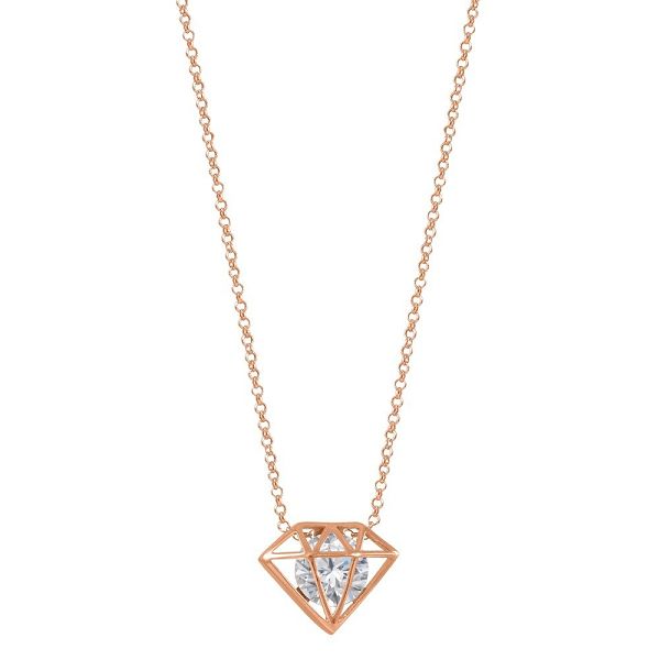 Κολιέ Από Ασήμι 925 Ροζ Επιχρυσωμένο Με Σχέδιο Διαμάντι EX18645