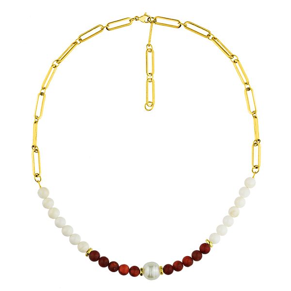 Κολιέ Από Ανοξείδωτο Ατσάλι Επιχρυσωμένο 24Κ Με Φίλντισι, Κοράλι Και Μαργαριτάρι AA17899