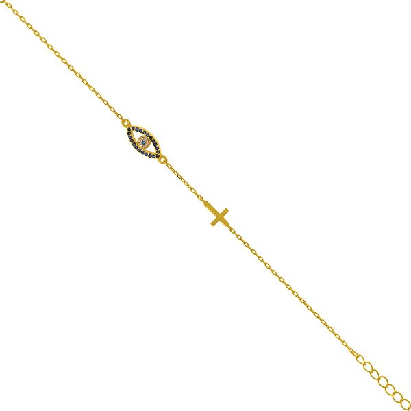 Βραχιόλι Από Ασήμι 925 Επιχρυσωμένο Με Ματάκι Και Σταυρό PS25813