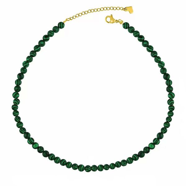 Κολιέ Από Ανοξείδωτο Ατσάλι Επιχρυσωμένο 24K Με Ημιπολύτιμο Λίθο Μαλαχίτη AA14600