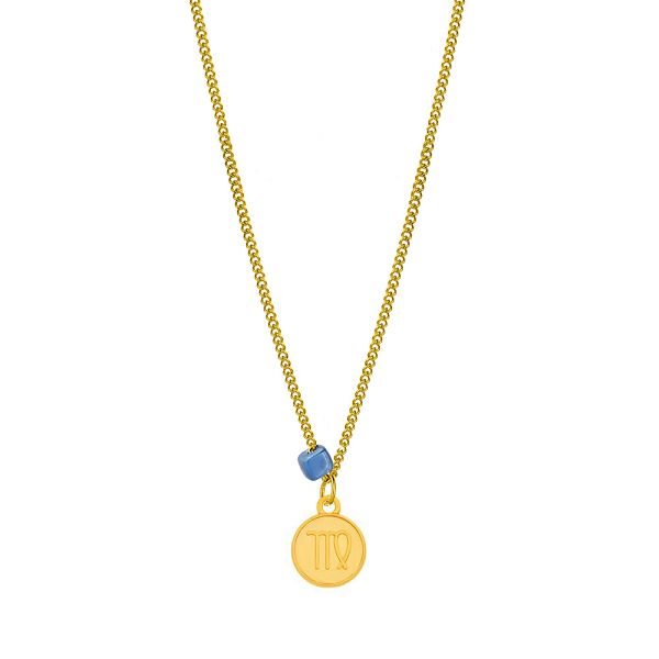 Κολιέ Από Ανοξείδωτο Ατσάλι Και Ορείχαλκο Επιχρυσωμένο 24Κ Με Το Ζώδιο του Παρθένου Και Χάντρα AA15805