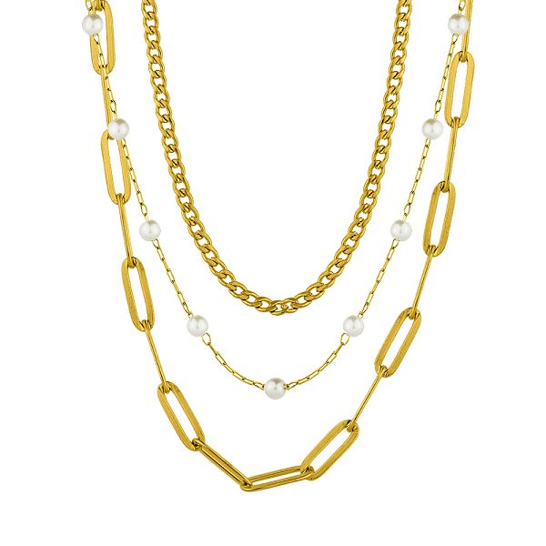 Τριπλό Κολιέ Αλυσίδες Από Ανοξείδωτο Ατσάλι Επιχρυσωμένο 24Κ TA17743