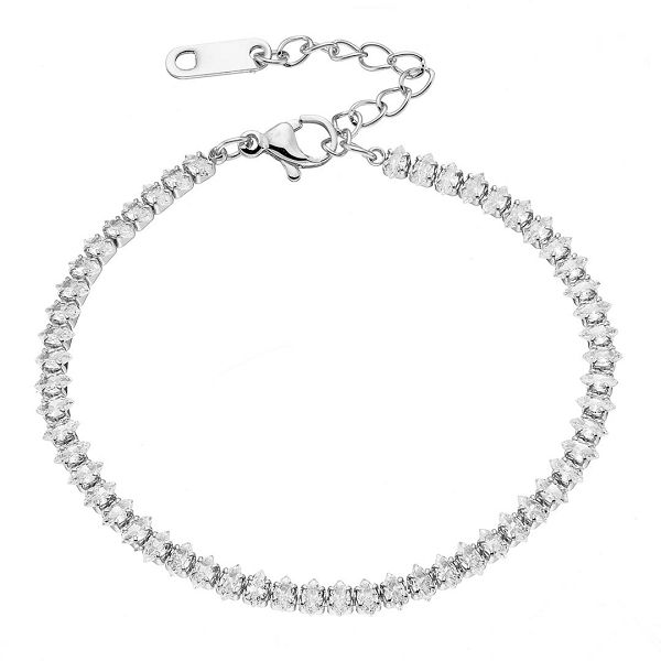 Βραχιόλι Από Ατσάλι Ριβιέρα Με Λευκά Ζιργκόν AS25973