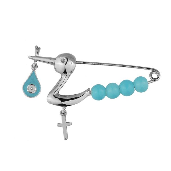 Παραμάνα Πελαργός Από Ασήμι 925 Με Ματάκι Και Σταυρό KO70597