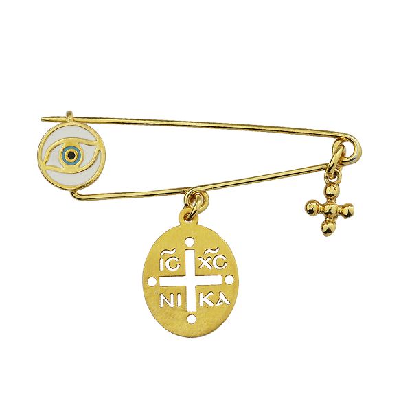Παραμάνα Από Ασήμι 925 Επιχρυσωμένο Με Ματάκι, Σταυρό Και Φλουρί KO70613