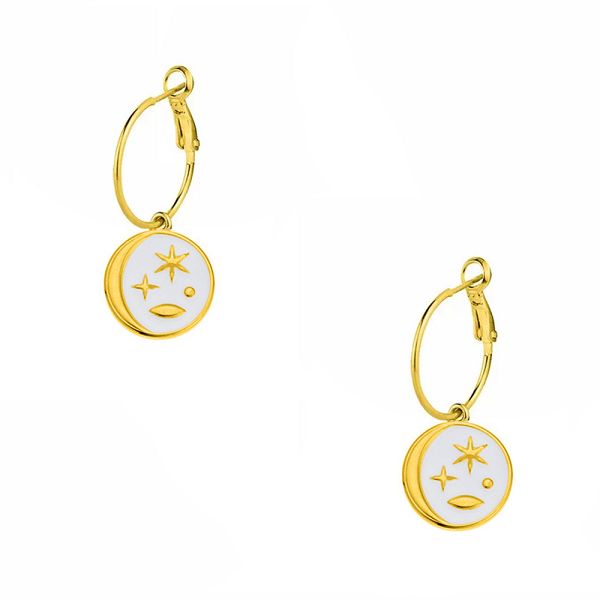 Σκουλαρίκια Κρίκοι Από Ορείχαλκο Επιχρυσωμένο 24Κ Με Φεγγάρι Και Αστέρια AA45171