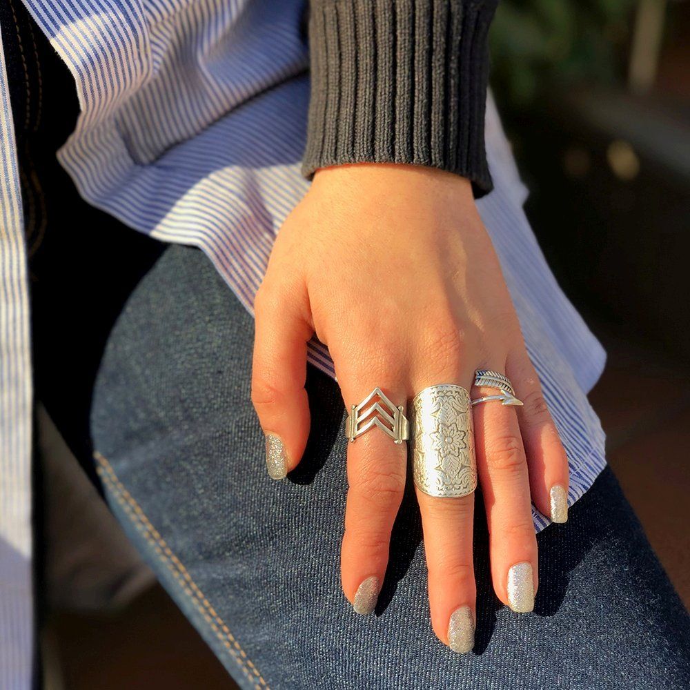 Ένα μοναδικό χειροποίητο δαχτυλίδι της εταιρείας AMOR AMOR από ανθεκτικό ορείχαλκο επαργυρωμένο, χωρις νικέλιο(δεν προκαλεί αλλεργίες). Προσαρμόζεται στο δάχτυλο και καλύπτει μεγέθη από 53 εώς 60.