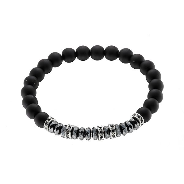 Ελαστικό Βραχιόλι Με Ανοξείδωτο Ατσάλι Και Ημιπολύτιμο Λίθο Όνυχα AS25265