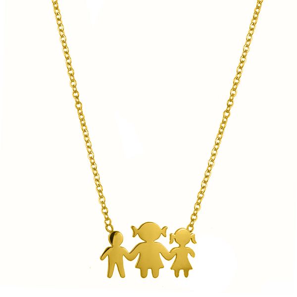 Κολιέ Από Ατσάλι Επιχρυσωμένο Με Οικογένεια-Μαμά-Γιό-Κόρη MI12816