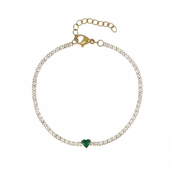 Βραχιόλι Ριβιέρα 2mm Από Ατσάλι Επιχρυσωμένο Με Καρδιά TU29822