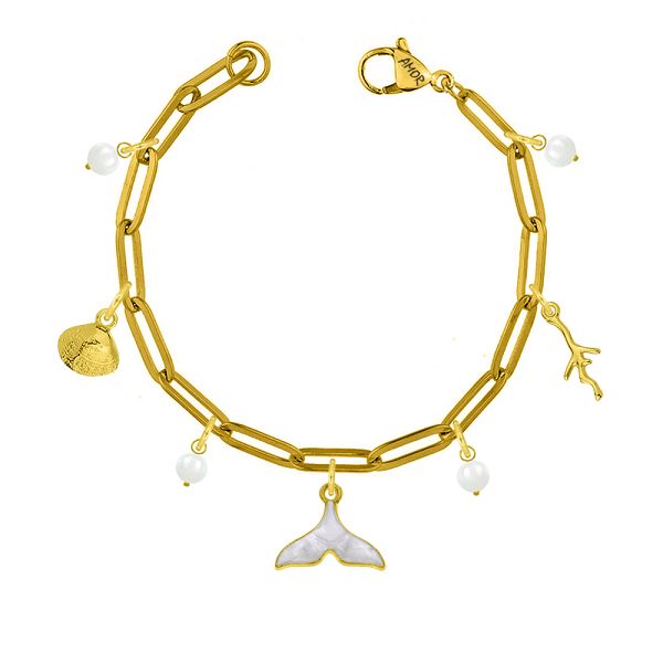 Βραχιόλι Από Ατσάλι Επιχρυσωμένο Με Κοχύλι, Ουρά Φάλαινας Και Αστερία AA29736