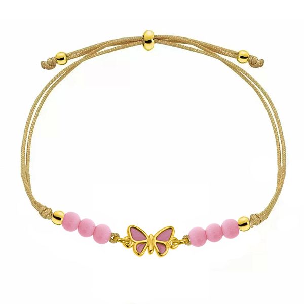Βραχιόλι Από Κορδόνι, Χάντρες Και Ορείχαλκο Επιχρυσωμένο 24Κ Με Πεταλούδα AA25437