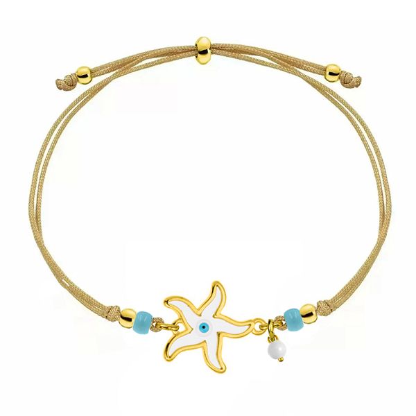 Βραχιόλι Από Κορδόνι Και Ορείχαλκο Επιχρυσωμένο 24Κ Με Αστερία Και Ματάκι AA25445