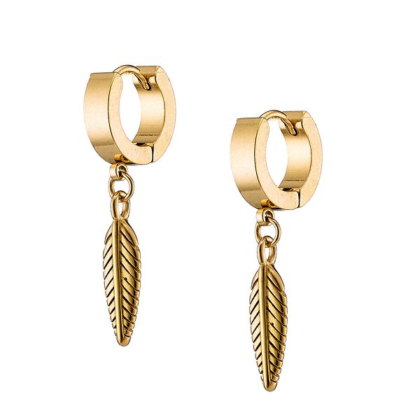 Σκουλαρίκια Κρίκοι 10mm Από Ατσάλι Επιχρυσωμένο 24Κ Με Φτερό AS48690