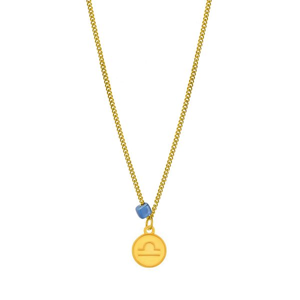 Κολιέ Από Ανοξείδωτο Ατσάλι Και Ορείχαλκο Επιχρυσωμένο 24Κ Με Το Ζώδιο του Ζυγού Και Χάντρα AA15807