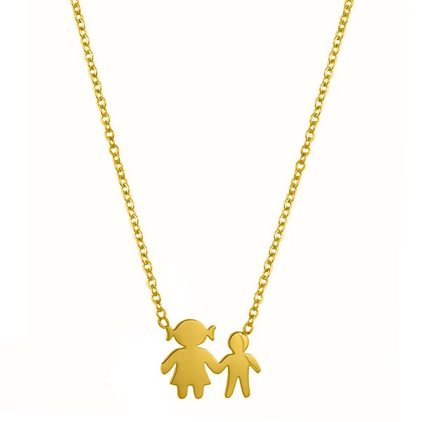 Κολιέ Από Ατσάλι Επιχρυσωμένο 24Κ Με Οικογένεια-Μαμά-Γιό MI12820