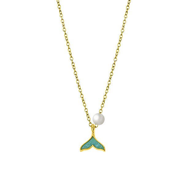 Κολιέ Από Ανοξείδωτο Ατσάλι Και Ορείχαλκο Επιχρυσωμένο 24Κ Με Ουρά Φάλαινας Και Μαργαριτάρι AA15097