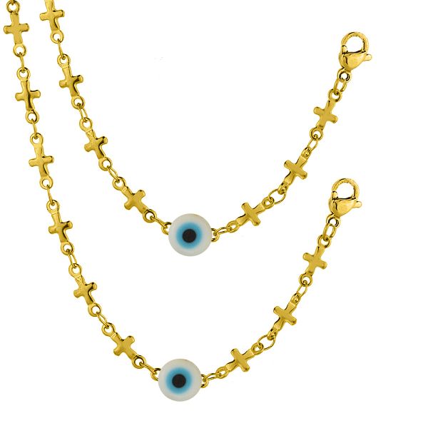 Κολιέ Από Ανοξείδωτο Ατσάλι Και Ορείχαλκο Επιχρυσωμένο 24Κ Με Ματάκι AA17721