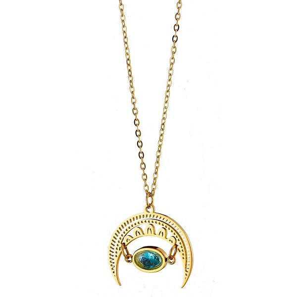 Κολίε Από Ατσάλι Επιχρυσωμένο 24Κ Με Ζιργκόν Πράσινο AS12720