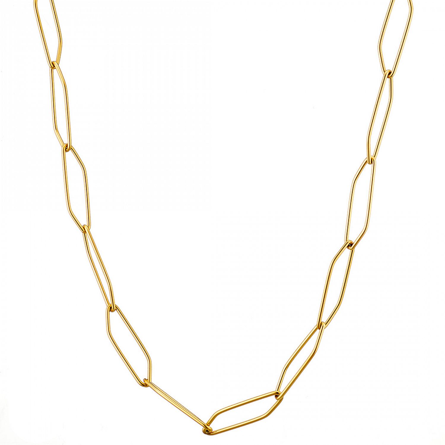 Μοναδικό χειροποίητο κολιέ της εταιρείας AMOR AMOR από ανοξείδωτο ατσάλι επιχρυσωμένο 24Κ με κούμπωμα ασφαλείας. Κόσμημα από ανοξείδωτο ατσάλι δεν μπορεί σε καμία περίπτωση να υποστεί οξείδωση (σκουριά), δεν μαυρίζει ποτέ και ασφαλώς δεν δημιουργεί αλλεργίες (υποαλλεργικό). Μπορεί να φορεθεί καθημερινά και χωρίς κανέναν περιορισμό κάτω από οποιεσδήποτε συνθήκες π.χ. επαφή με νερό, ιδρώτα ακόμα και στην θάλασσα. Έτσι λοιπόν, ένα κόσμημα το οποίο είναι κατασκευασμένο από ανοξείδωτο ατσάλι είναι σίγουρο πως θα διατηρήσει για πάντα τη μοναδική λάμψη του.