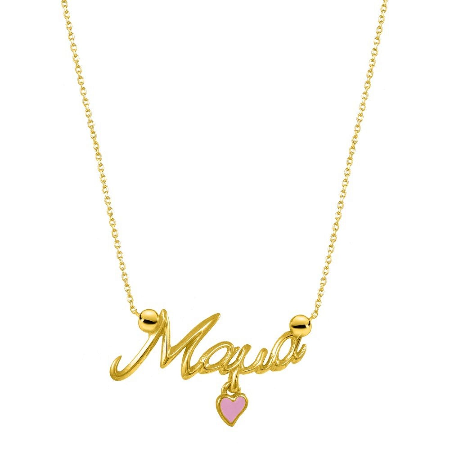 Ένα μοναδικό χειροποίητο κολιέ της εταιρείας AMOR AMOR από ασήμι 925 επιχρυσωμένο με τη λέξη Μαμά, καρδούλα με ροζ σμάλτο και κούμπωμα ασφαλείας.