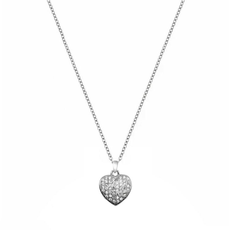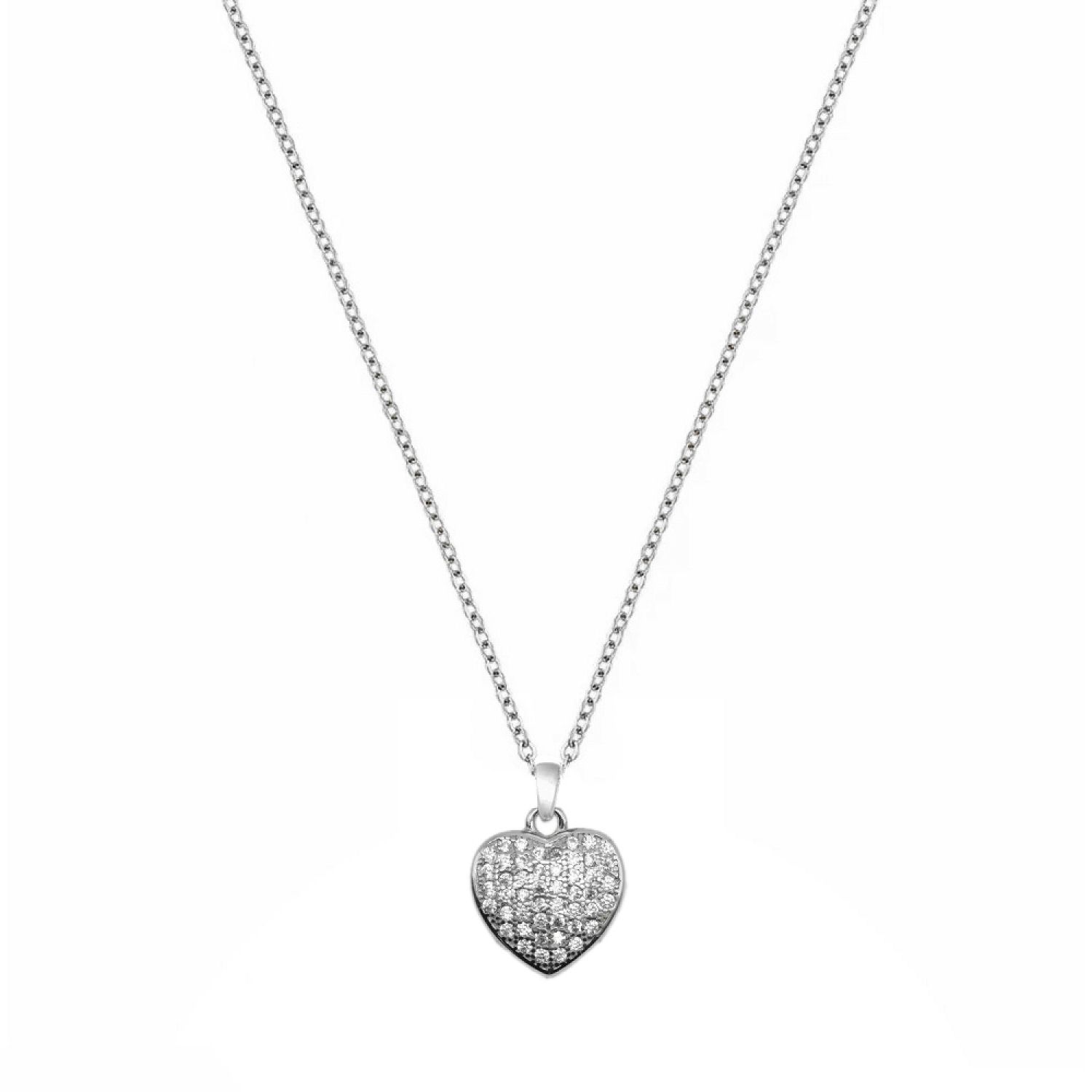 Μοναδικό χειροποίητο κολιέ AMOR AMOR από ασήμι 925 με καρδία από ζιργκόν και κούμπωμα ασφαλείας. Διαστάσεις μοτίφ περίπου 1,8x1 cm.