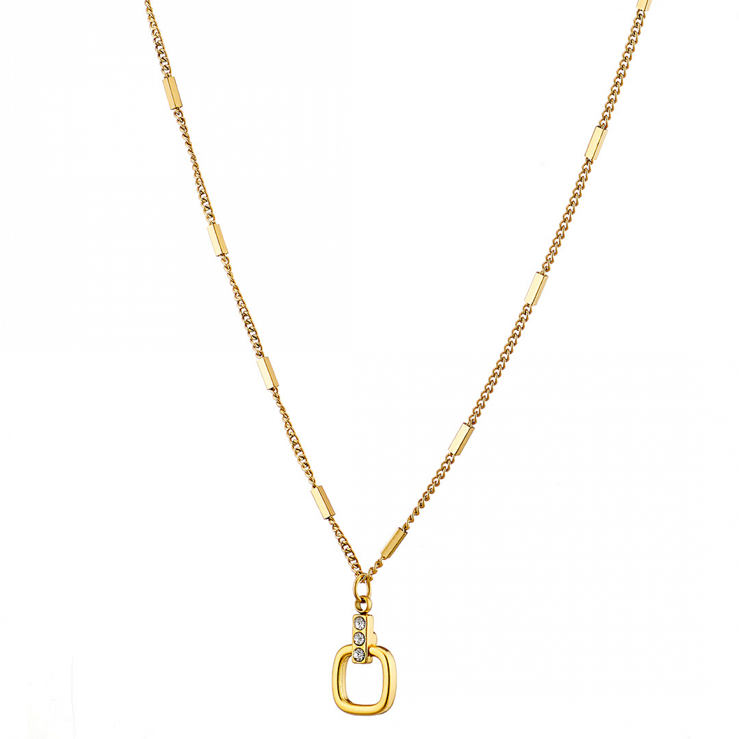 Μοναδικό χειροποίητο κολιέ της εταιρείας AMOR AMOR από ανοξείδωτο ατσάλι επιχρυσωμένο 24Κ με κούμπωμα ασφαλείας. Κόσμημα από ανοξείδωτο ατσάλι δεν μπορεί σε καμία περίπτωση να υποστεί οξείδωση (σκουριά), δεν μαυρίζει ποτέ και ασφαλώς δεν δημιουργεί αλλεργίες (υποαλλεργικό). Μπορεί να φορεθεί καθημερινά και χωρίς κανέναν περιορισμό κάτω από οποιεσδήποτε συνθήκες π.χ. επαφή με νερό, ιδρώτα ακόμα και στην θάλασσα. Έτσι λοιπόν, ένα κόσμημα το οποίο είναι κατασκευασμένο από ανοξείδωτο ατσάλι είναι σίγουρο πως θα διατηρήσει για πάντα τη μοναδική λάμψη του.