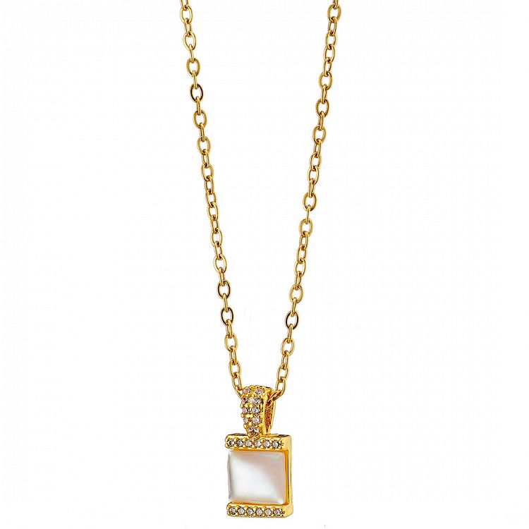 Μοναδικό χειροποίητο κολιέ της εταιρείας AMOR AMOR από ανοξείδωτο ατσάλι επιχρυσωμένο 24Κ με κούμπωμα ασφαλείας. Κόσμημα από ανοξείδωτο ατσάλι δεν μπορεί σε καμία περίπτωση να υποστεί οξείδωση (σκουριά), δεν μαυρίζει ποτέ και ασφαλώς δεν δημιουργεί αλλεργίες (υποαλλεργικό). Μπορεί να φορεθεί καθημερινά και χωρίς κανέναν περιορισμό κάτω από οποιεσδήποτε συνθήκες π.χ. επαφή με νερό, ιδρώτα ακόμα και στην θάλασσα. Έτσι λοιπόν, ένα κόσμημα το οποίο είναι κατασκευασμένο από ανοξείδωτο ατσάλι είναι σίγουρο πως θα διατηρήσει για πάντα τη μοναδική λάμψη του.