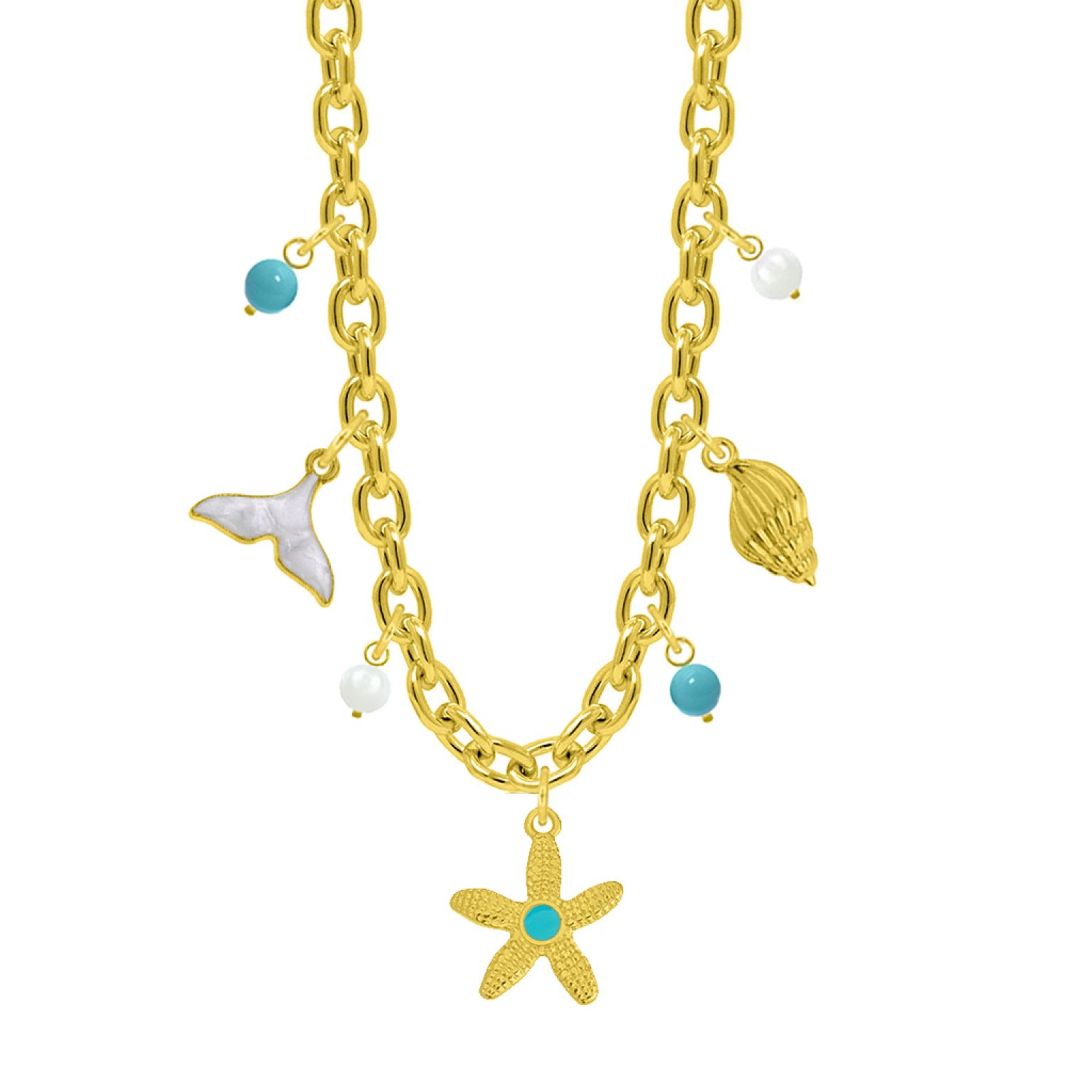 Κολιέ Από Ατσάλι Επιχρυσωμένο Με Αστερία, Κοχύλι Και Ουρά ΦάλαιναςAA13702
