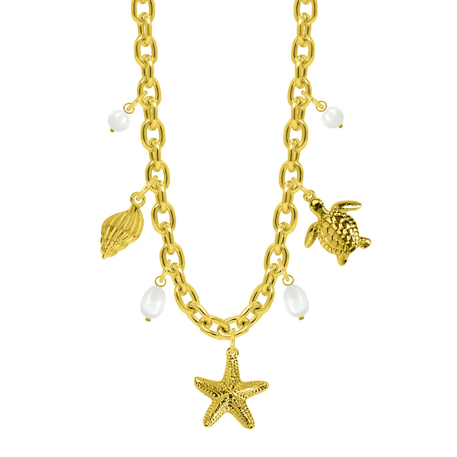 Κολιέ Από Ατσάλι Επιχρυσωμένο Με Κοχύλι, Χελώνα Και Αστερία AA13698