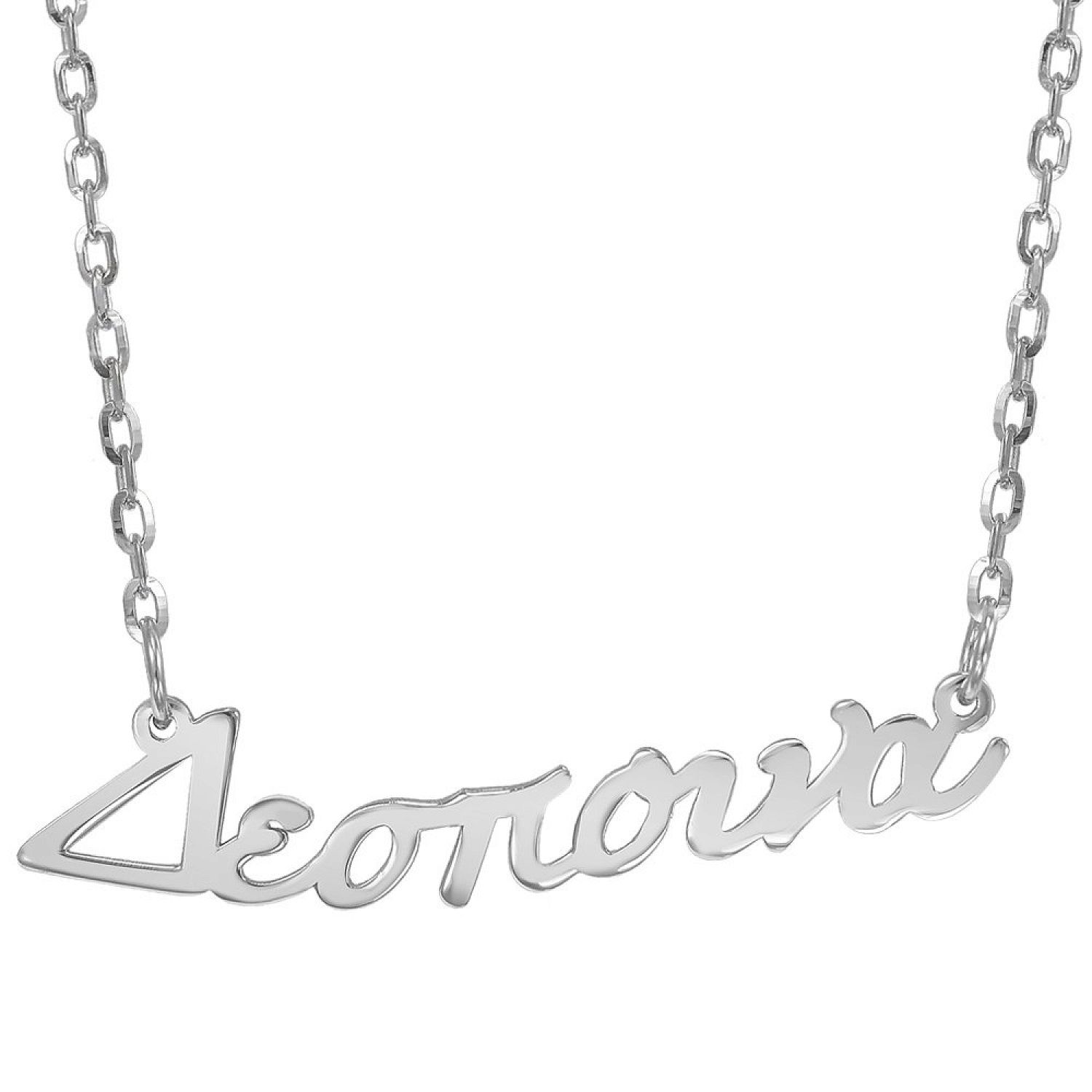 Δημιουργήστε το δικό σας μοναδικό κολιέ με το όνομά σας ή το όνομα των αγαπημενων σας από λευκόχρυσο 14 καράτια με κουμπωμα ασφαλείας. Διαθέσιμο κατόπιν παραγγελίας σε 3-5 εργάσιμες ημέρες