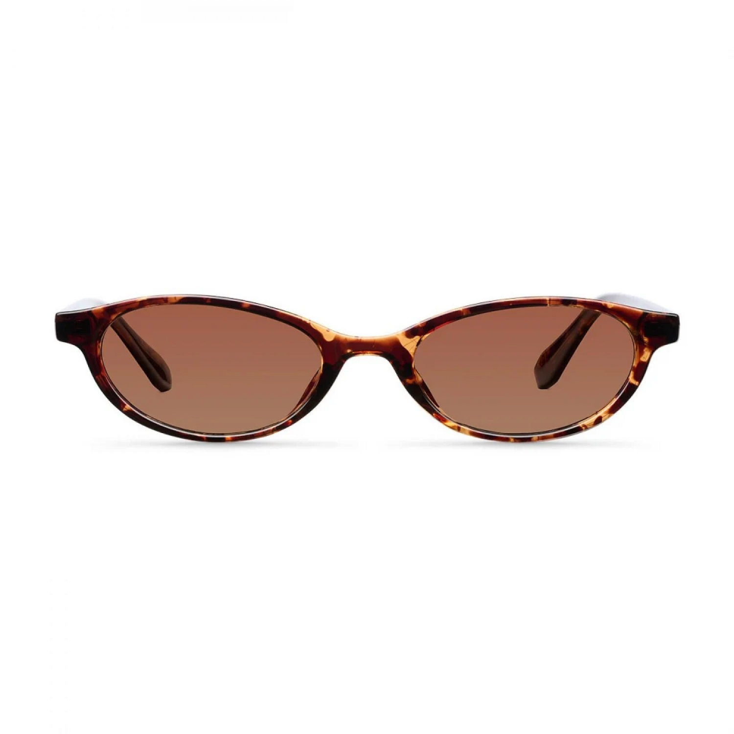 Γυαλιά Ηλίου Meller Binti collection με ταρταρούγα σκελετό και πολωμένους φακούς σε καφέ απόχρωση. Xαρακτηριστικά: Ο σκελετός από Bio-based G850 και Cellulose Propionate τα καθιστά ανθεκτικά, ελαφριά και φιλικά προς το περιβάλλον Φακοί: Polarized, UV400 για μέγιστη προστασία από τις υπεριώδεις ακτίνες Περιλαμβάνει: Κουτί, υφασμάτινη θήκη και πανί καθαρισμού Διαστάσεις: Μήκος Σκελετού: 138mm Μήκος Βραχίονα: 145mm Ύψος Φακού: 32mm