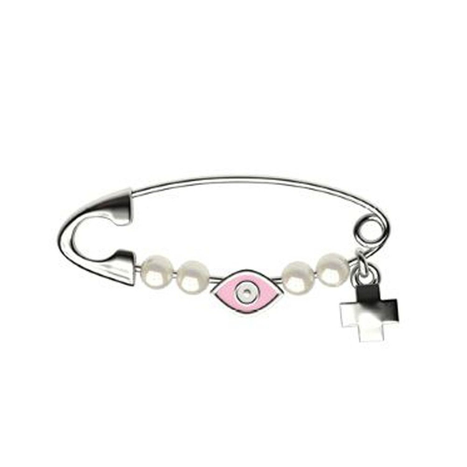 Μοναδικη χειροποίητη παραμάνα της εταιρείας AMOR AMOR από ασήμι 925 επιπλατινωμένο με σταυρό και ματάκι από σμάλτο και κρύσταλλα Swarovski.