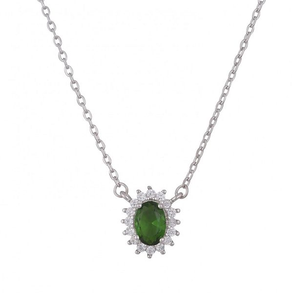 Κολιέ Ροζέτα Από Ασήμι 925 Οβάλ Με Ζιργκόν Aqua SS12248