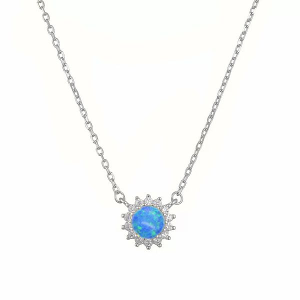 Κολιέ Ροζέτα Από Ασήμι 925 Στρογγυλό Με Μπλε Οπάλι SS12260