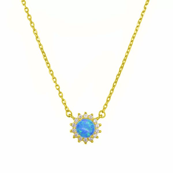 Κολιέ Ροζέτα Από Ασήμι 925 Επιχρυσωμένο Στρογγυλό Με Μπλε Οπάλι SS12261
