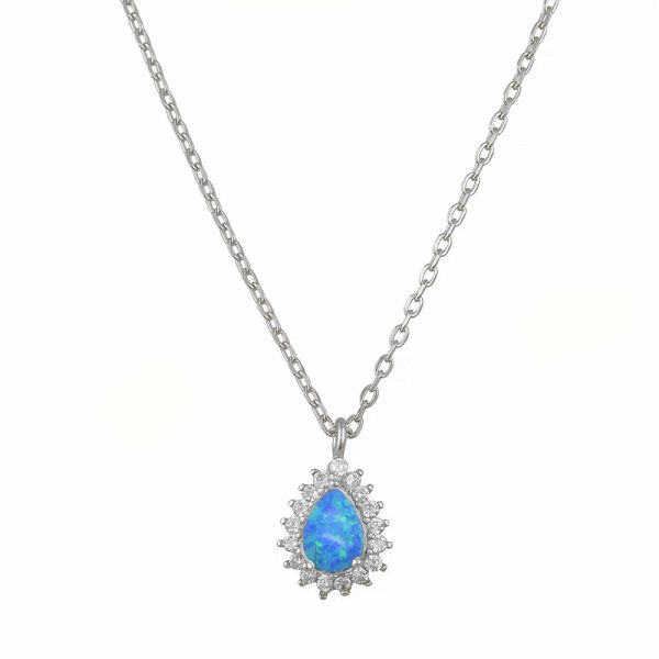 Κολιέ Ροζέτα Από Ασήμι 925 Δάκρυ Με Μπλε Οπάλι SS12262