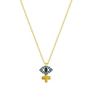 Βραχιόλι Από Ασήμι 925 Επιχρυσωμένο Με Σταυρό Και Ματάκι KO23488